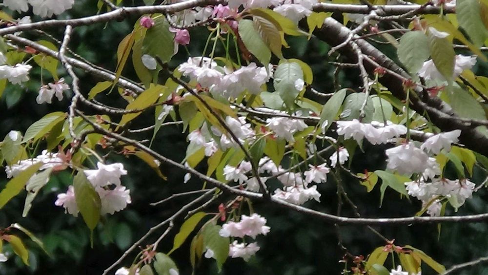 丹波亀山城址(現 大本本部)に咲く、珍種の山桜「コノハナザクラ」が咲きだしました。