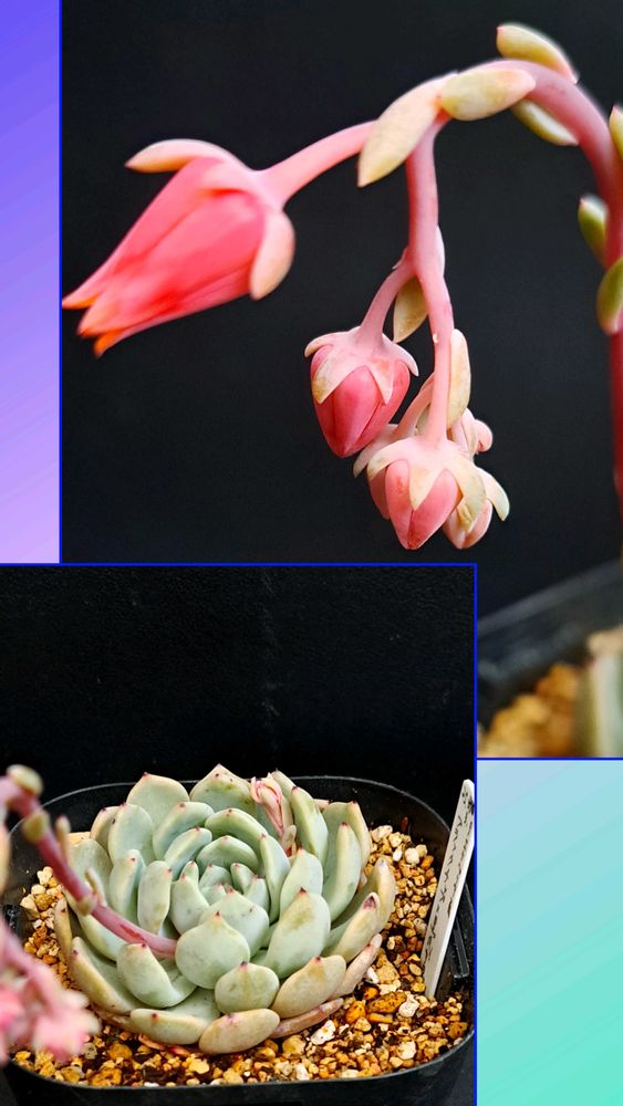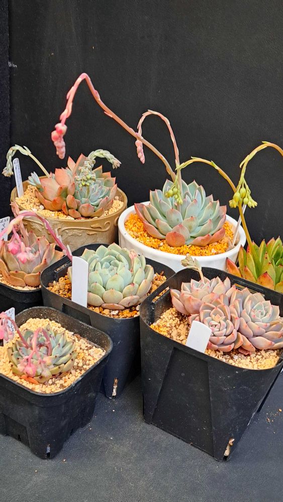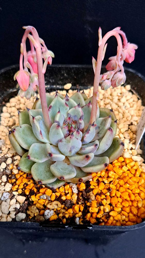 ③枚目…「エケベリア・ブラックティップス×黒爪ザラゴーサ2種」も花芽ノビノビ~🤭
