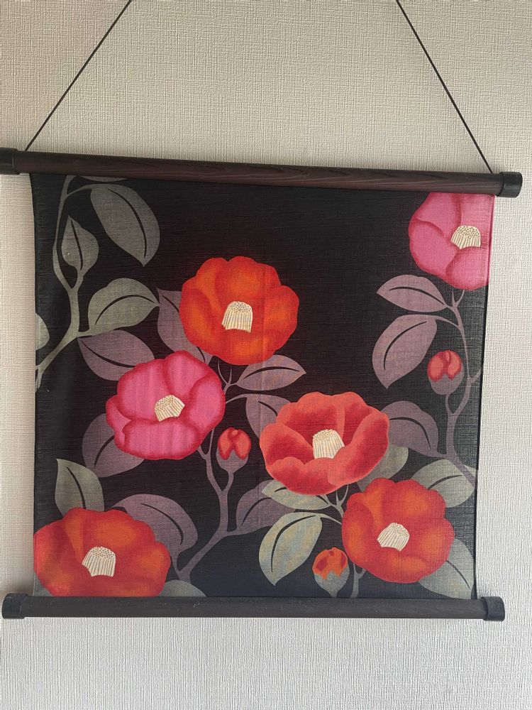 若い頃から椿の花が好きで、タペストリーもこの時期はこれを飾ってます😊