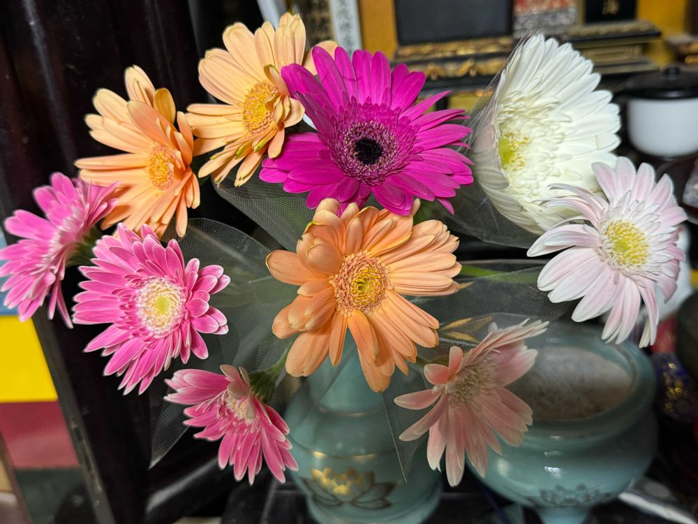 ひと束100円のガーベラが可愛いので仏壇にあげました。ツツジやアザレアも咲き始め、シャクヤクの蕾も出てきました。いいねのお返しなかなかできくてすみません。