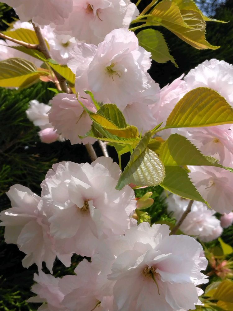 八重の桜が日に照らされてとても綺麗でした。