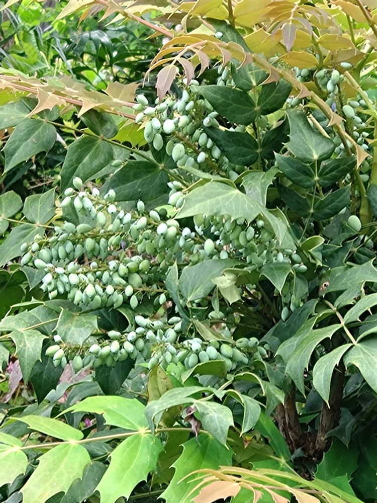 ベルベリス(マホニア)'チャリティ',グリーンの実,木曜日じゃなくても木の投稿画像