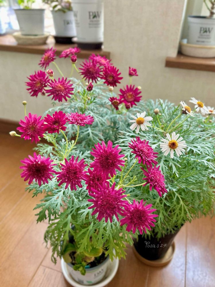 マーガレットも外でお日様浴びたら本来の形になるんでしょうね☀️
