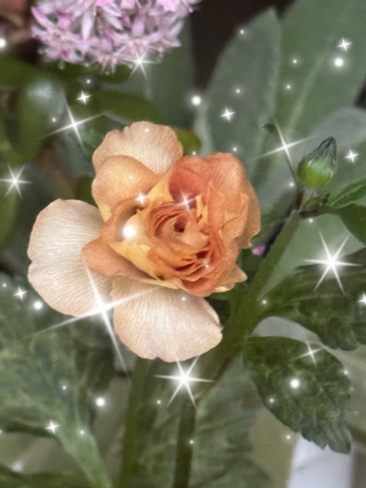 心配で冬の間縁側に避難していました。今朝雨戸を開けたら🧡咲いてました❣️