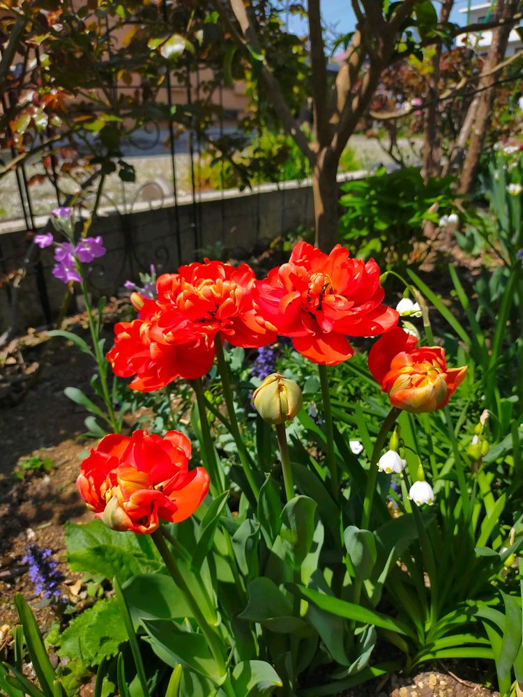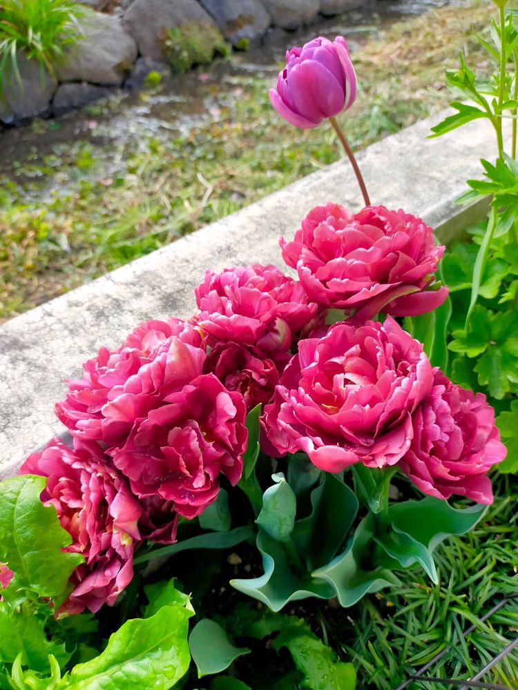 隣に咲いているのは去年の掘り上げ忘れのチューリップ🟣