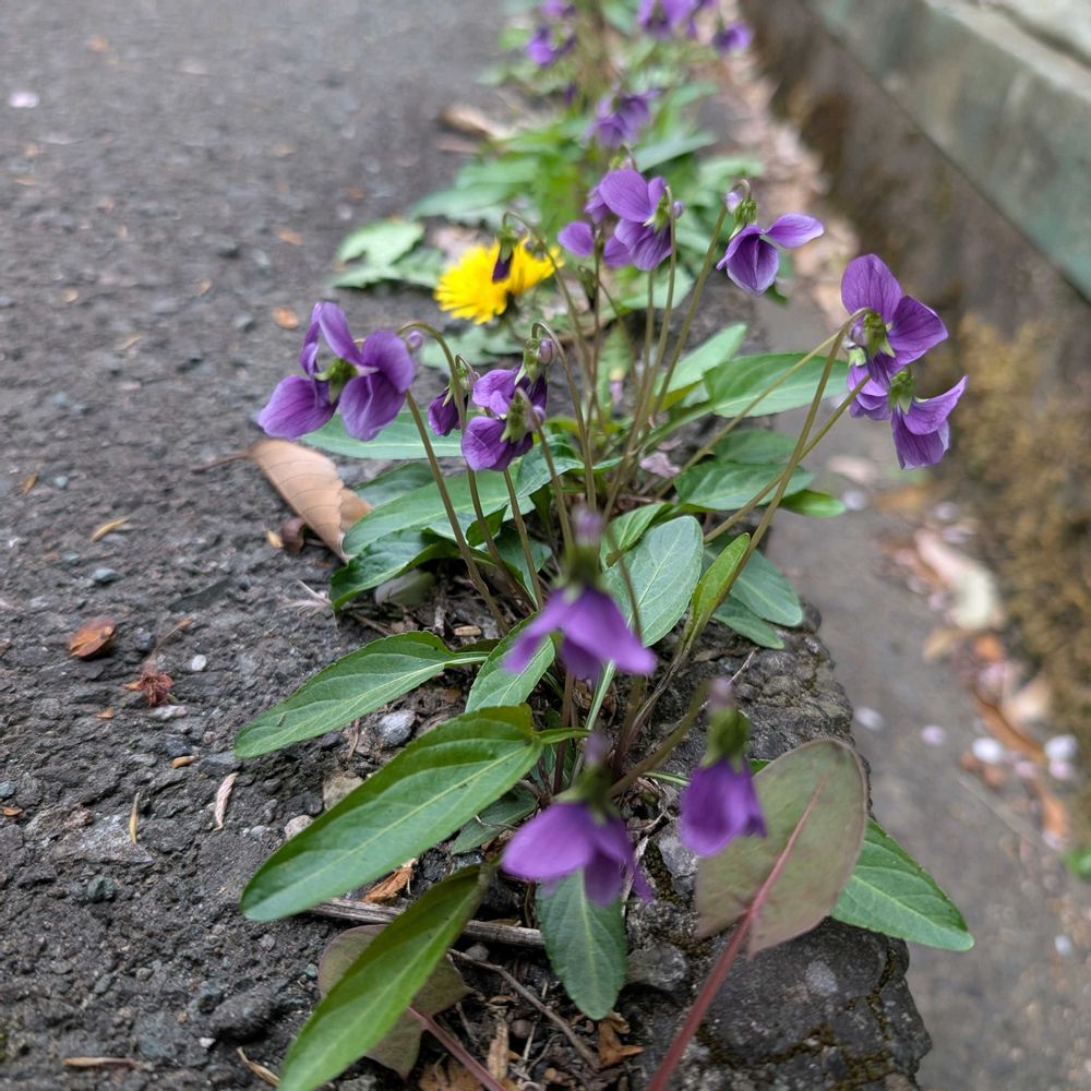 歩道のド根性スミレ株も多くズラリと。
