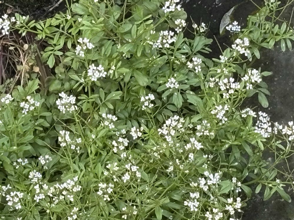 私が見つけた花もAIがオランダガラシと教えてくれたのですが、咲いていたのは建物の傍の溝の中。