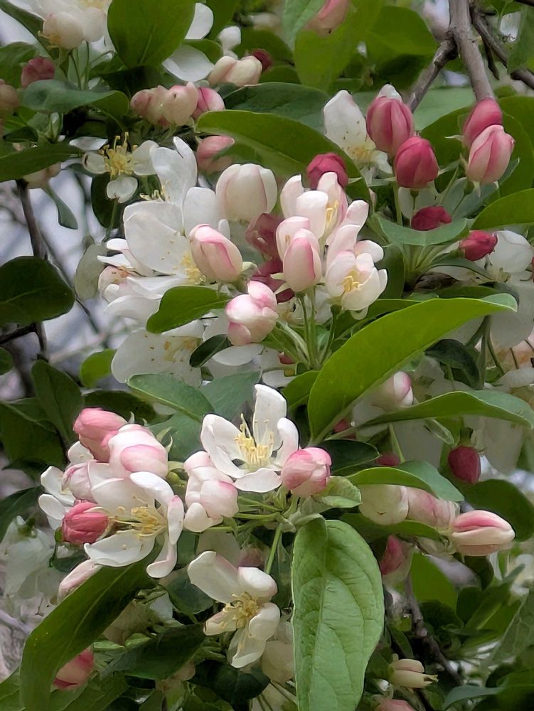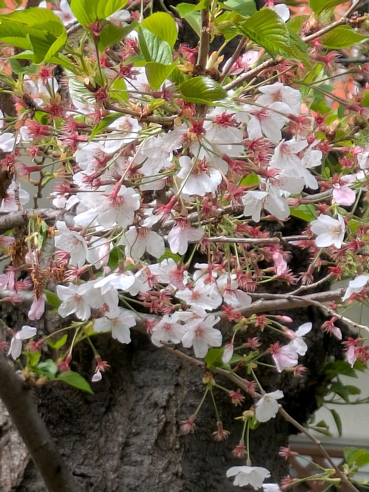 リンゴのお仲間のようなので…秋になるとサクランボのような赤い実がなり🍒 雀さんたちが鈴なりになります🐦⬛🐦⬛🐦⬛