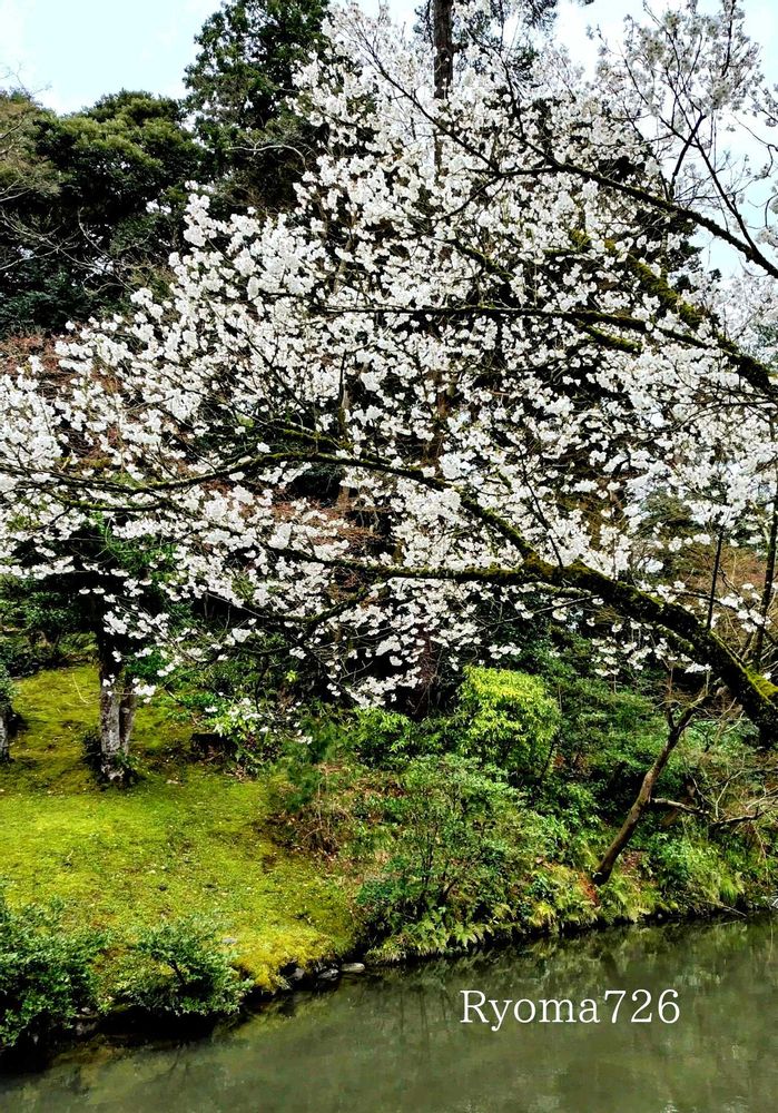 ④兼六園の池のそばに咲くサクラが きれいでした🌸