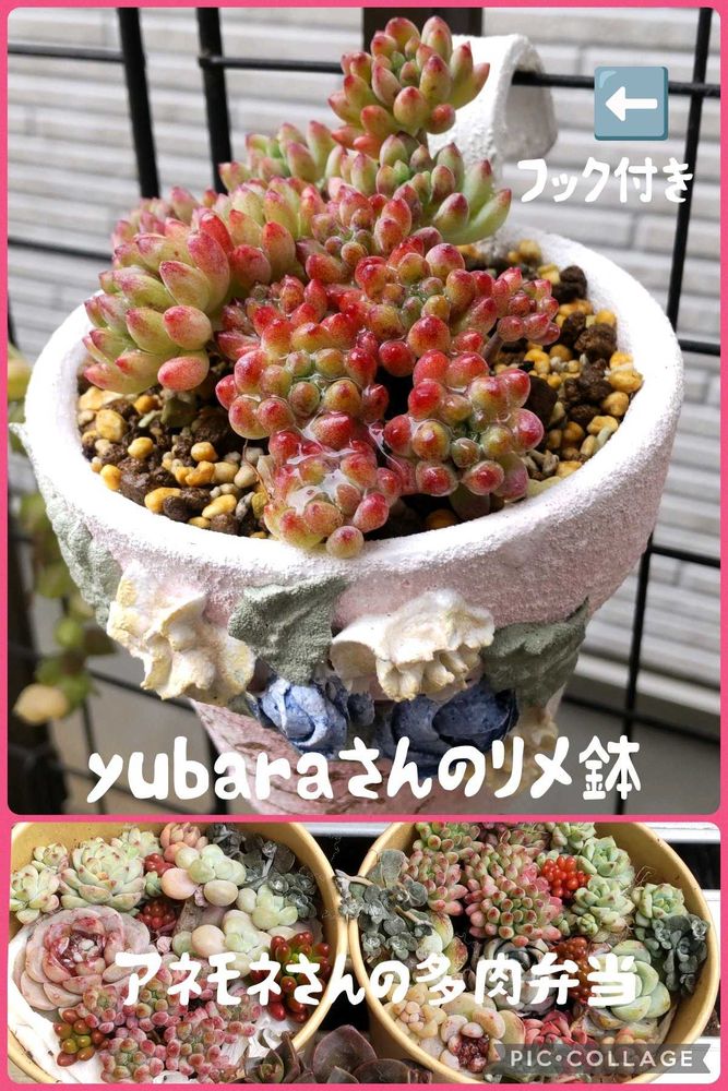 2枚目は、先日のイベントでGETしたyubaraさんの新作フック付きリメ鉢。届いたanemoneさんの多肉弁当の中の花火をIN。風が強い日は、なんとなく不安かも🤔