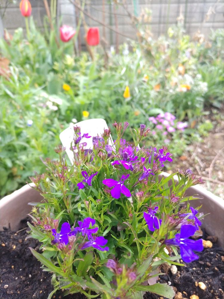 ロベニアの後ろにはミックスフラワーからの苗が咲いた。