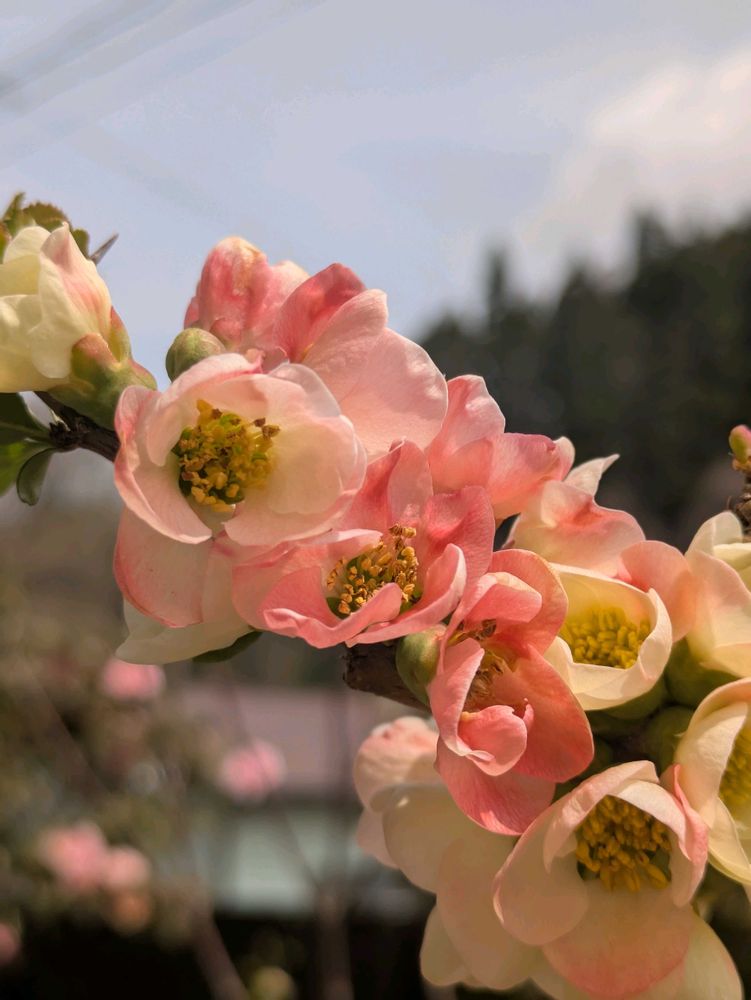 庭の木瓜の花がきれいに咲いてます😍🧓