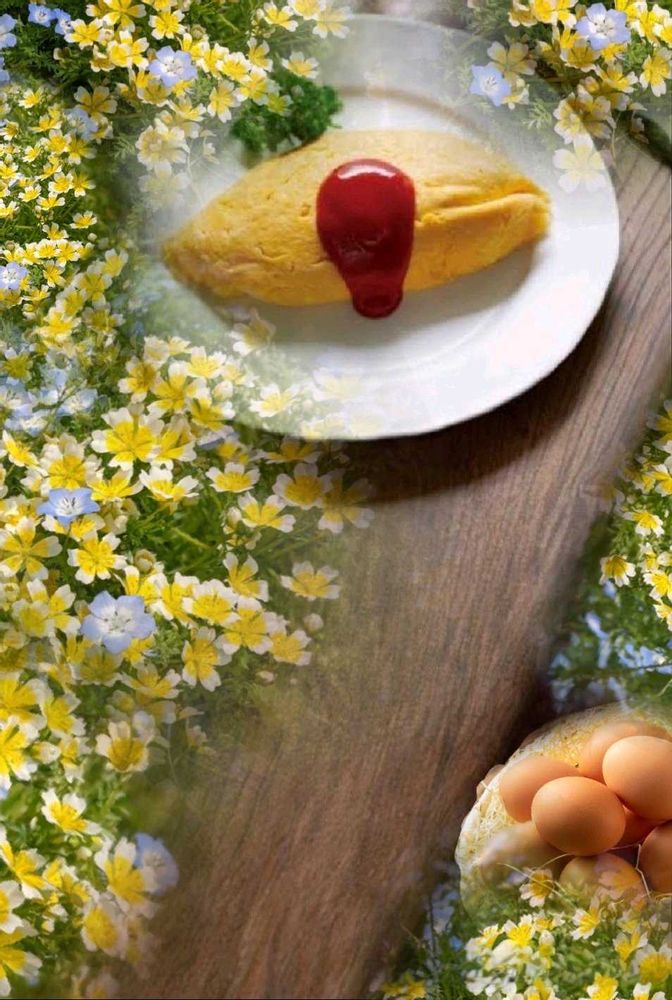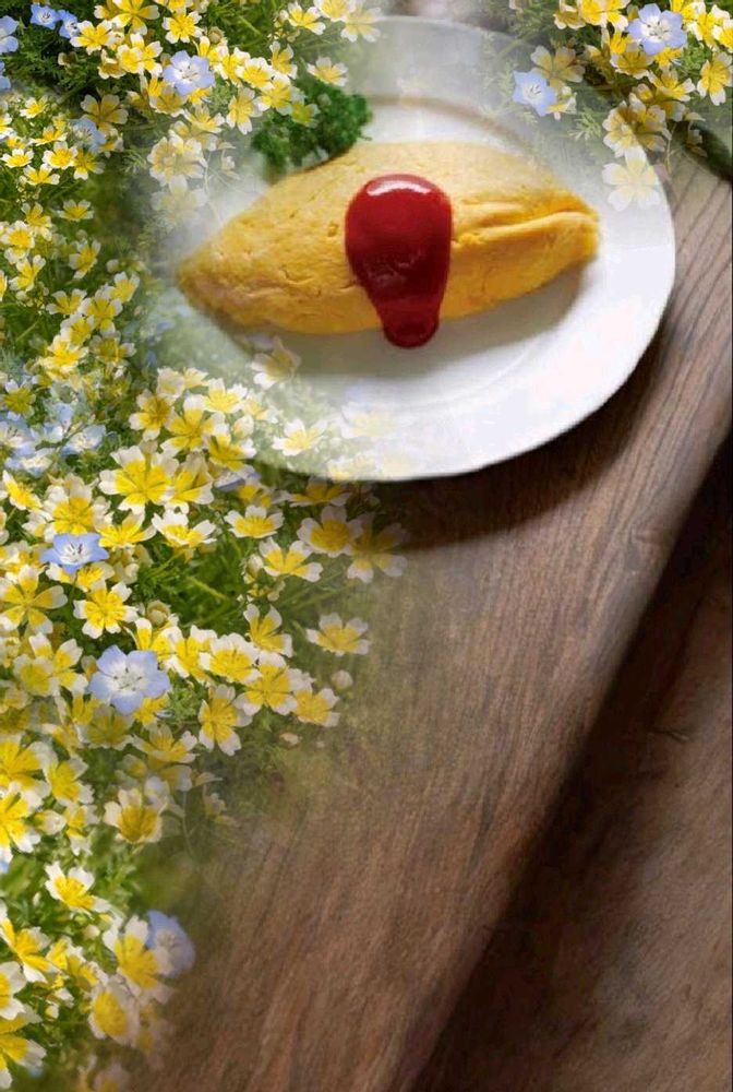 卵のイメージが有るリムランテスと オムライスを合わせてコラージュしてみました🌿💛🤍🥚🍽️😅