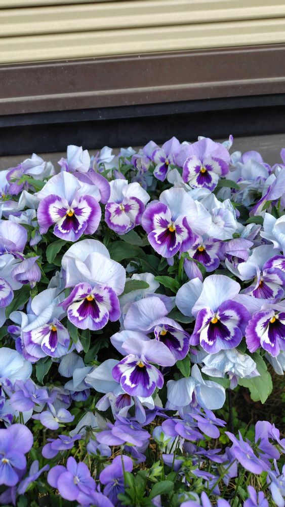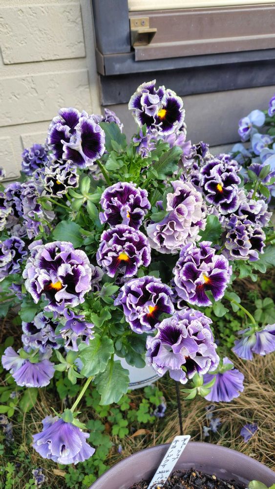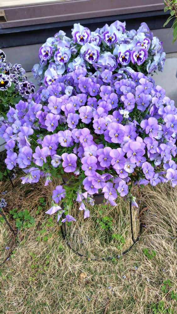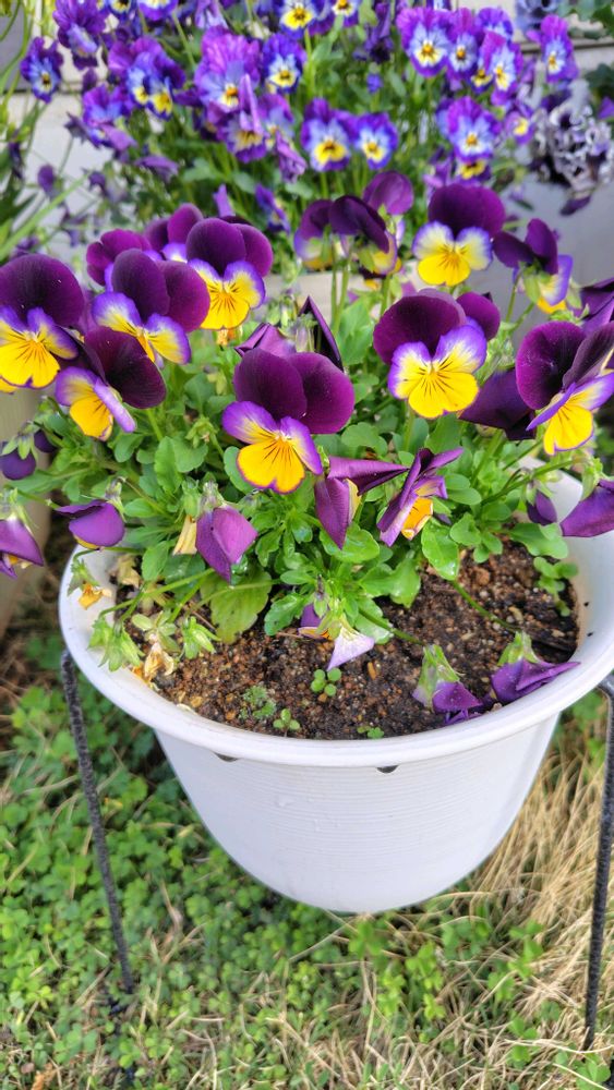 チャピマロさんのパンジー・ビオラも鉢から溢れるほどモリモリに咲いていますね😊💜💙💜💙🪴