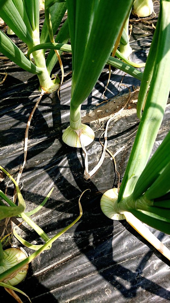 玉ねぎはこんな風に黒いシートを敷いて育てるのね!😳 ̖́-︎