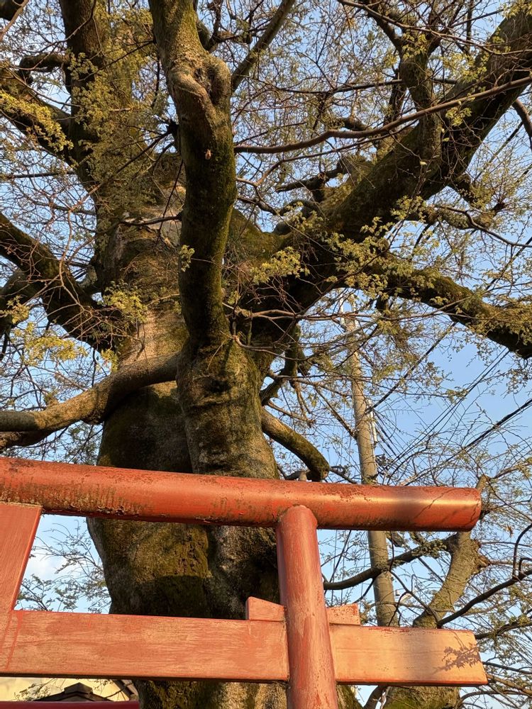 ①神社の大木も⛩️芽吹いてきました。よく見るとセミの抜け殻👀