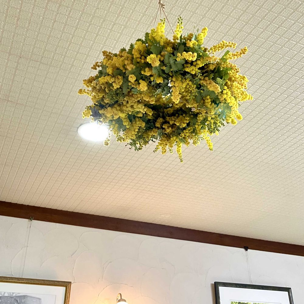 部屋中に切り花やスワッグ、リースがあるからミモザの香りが溢れてるわ🤭