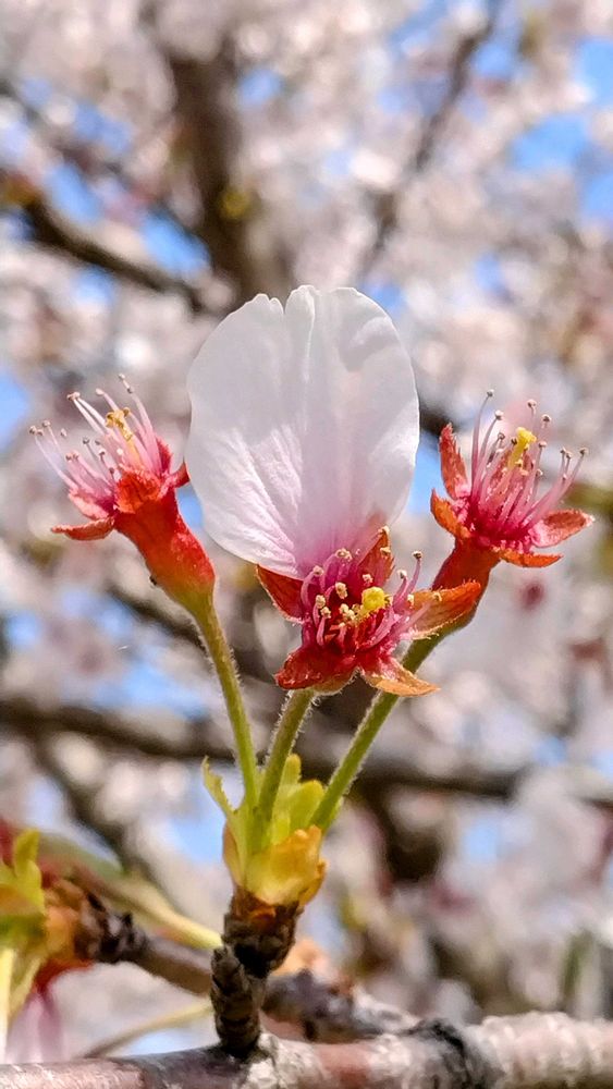 もうすぐ散る準備が出来た芯が赤みを帯びた桜