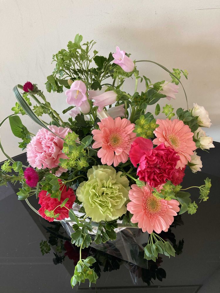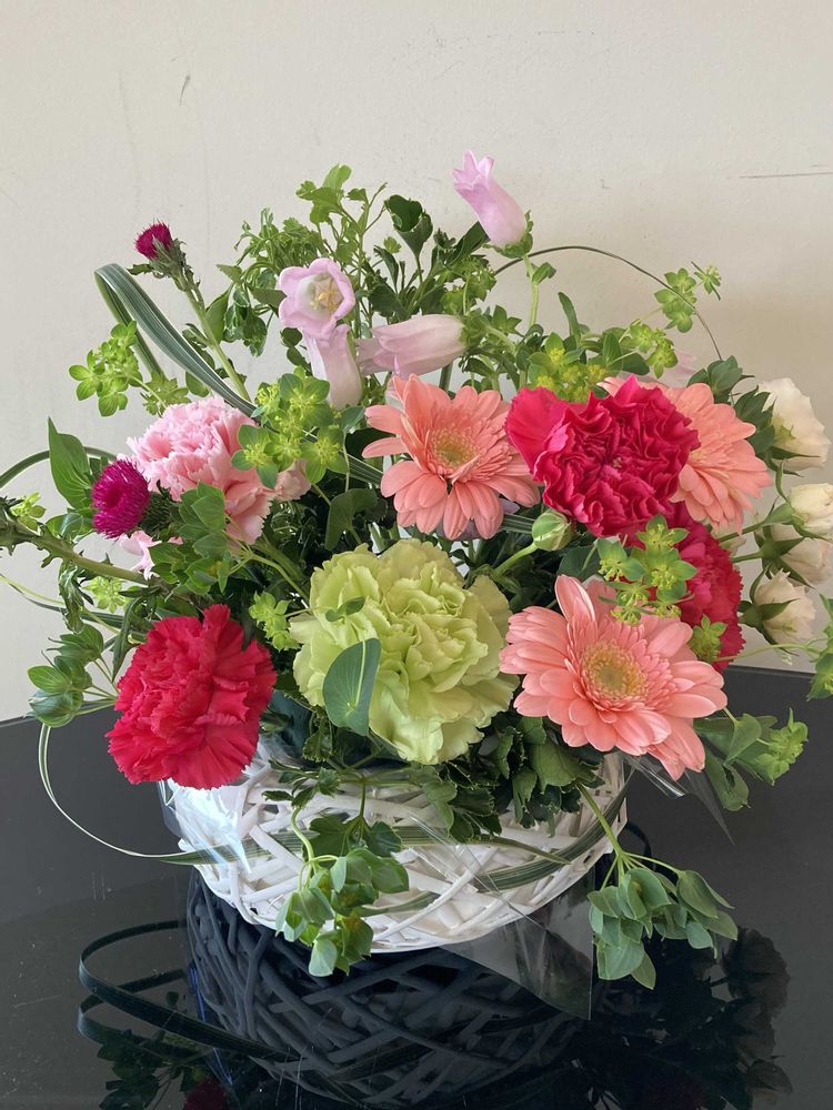 春らしいガーベラとカーネーションのアレンジ、ステキですね💕