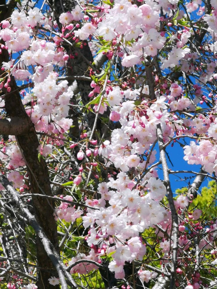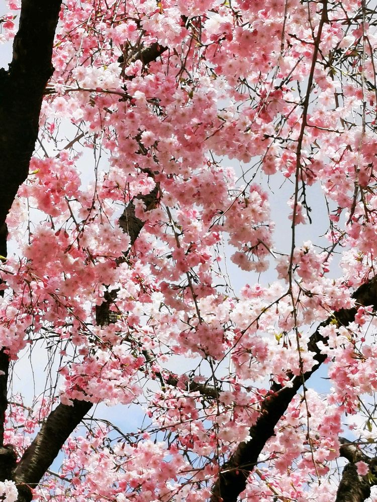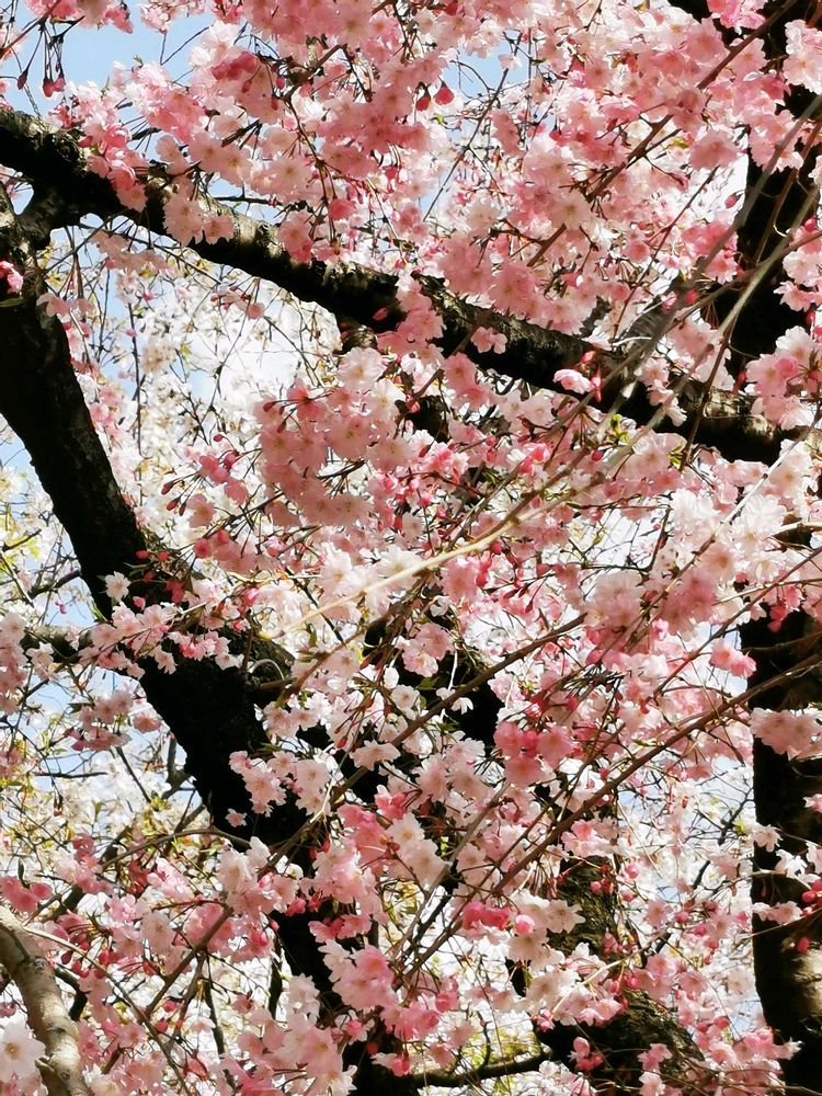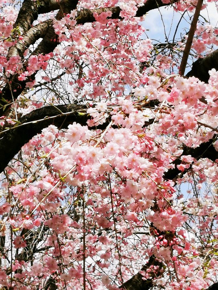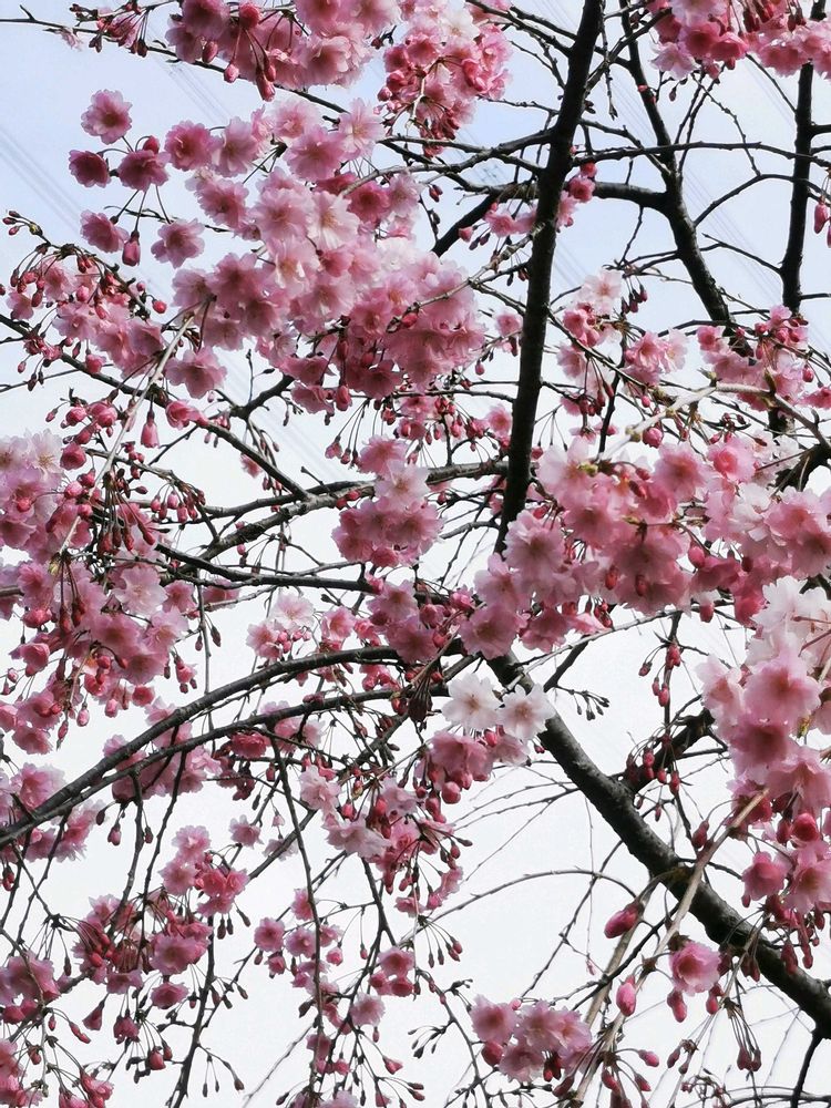 華やかな美しいベニシダレザクラに夢中です。🌸🌸🌸🌸🌸