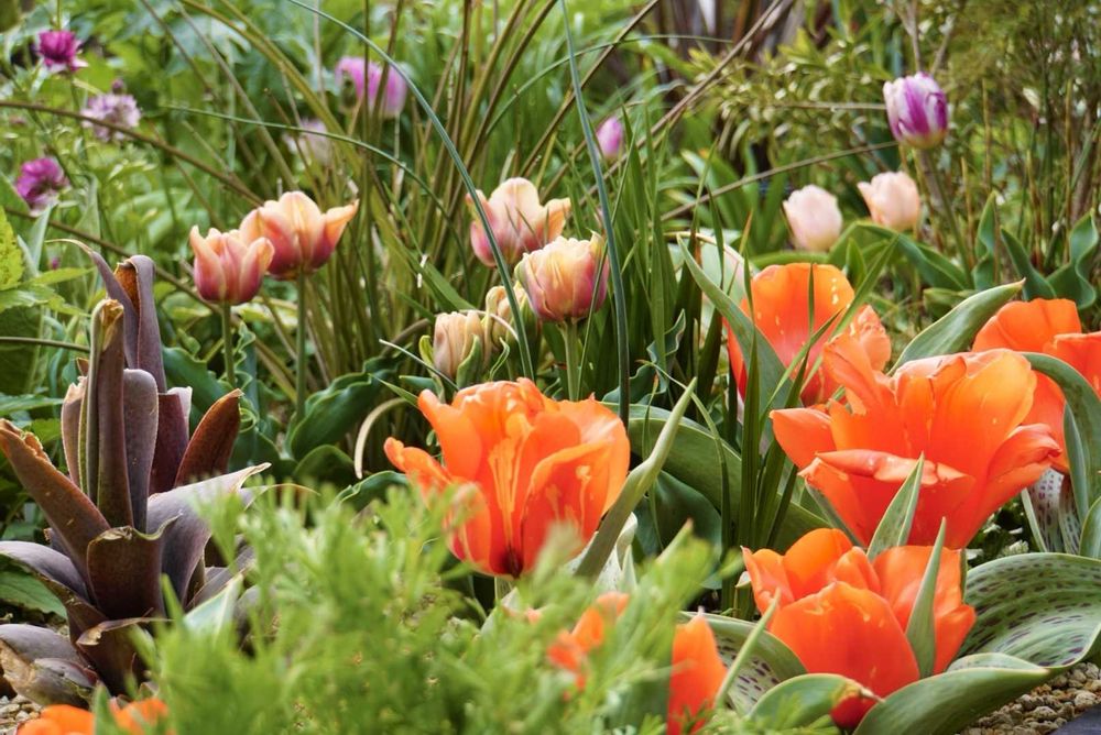 チューリップや芽吹きはじめた宿根草と仲良く存在感を発揮しているところがまた素晴らしいと思ったり