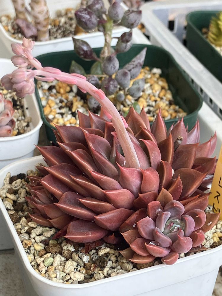 4枚目 気になってるクラッスラトメントーサのお花。花芽がこんなによく伸びたねーって褒めてます😊