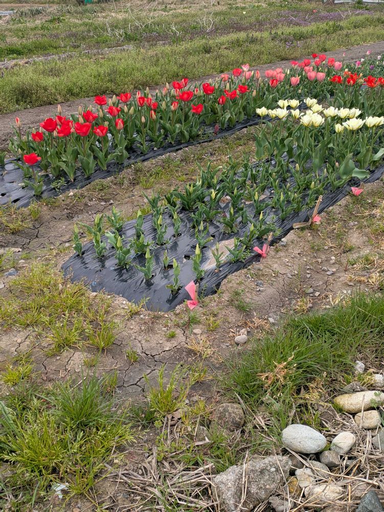 職場へ行く途中、畑で育てておられるチューリップ🌷今年も出会ったよ💐