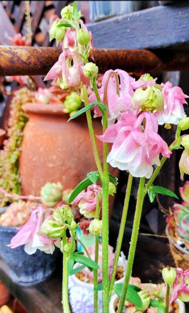 毎年多肉棚の隙間からこぼれ種で咲いてくれる西洋オダマキ