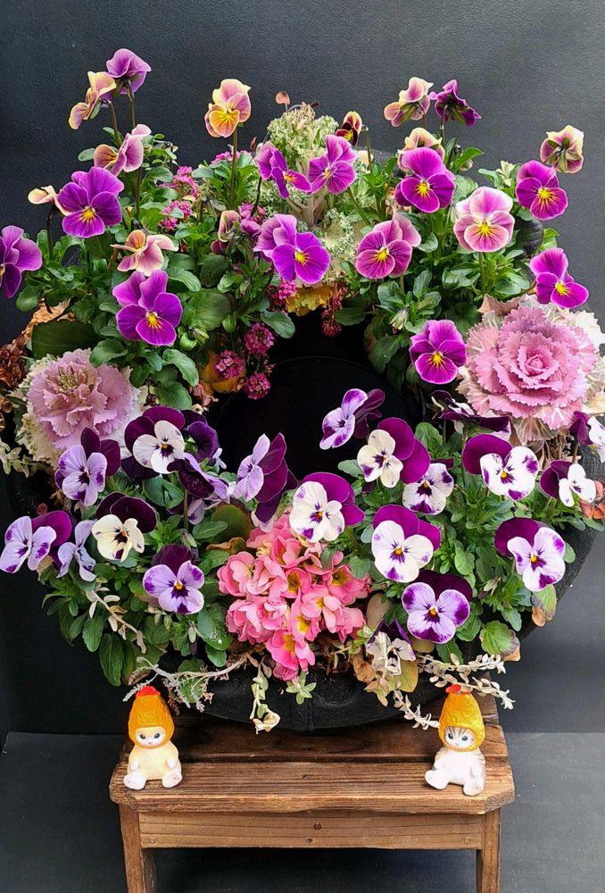 リースは、種からの葉牡丹だけでしたが…今年(昨年)は、ビオラメインのリースも作ってみました🙆💕