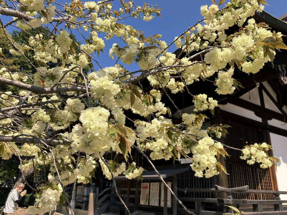 市内の八幡宮の鬱金桜が満開との事で観に行ってきました。