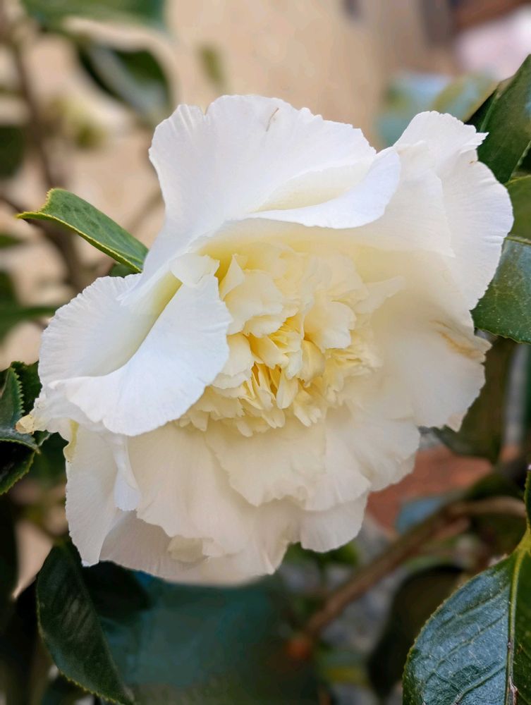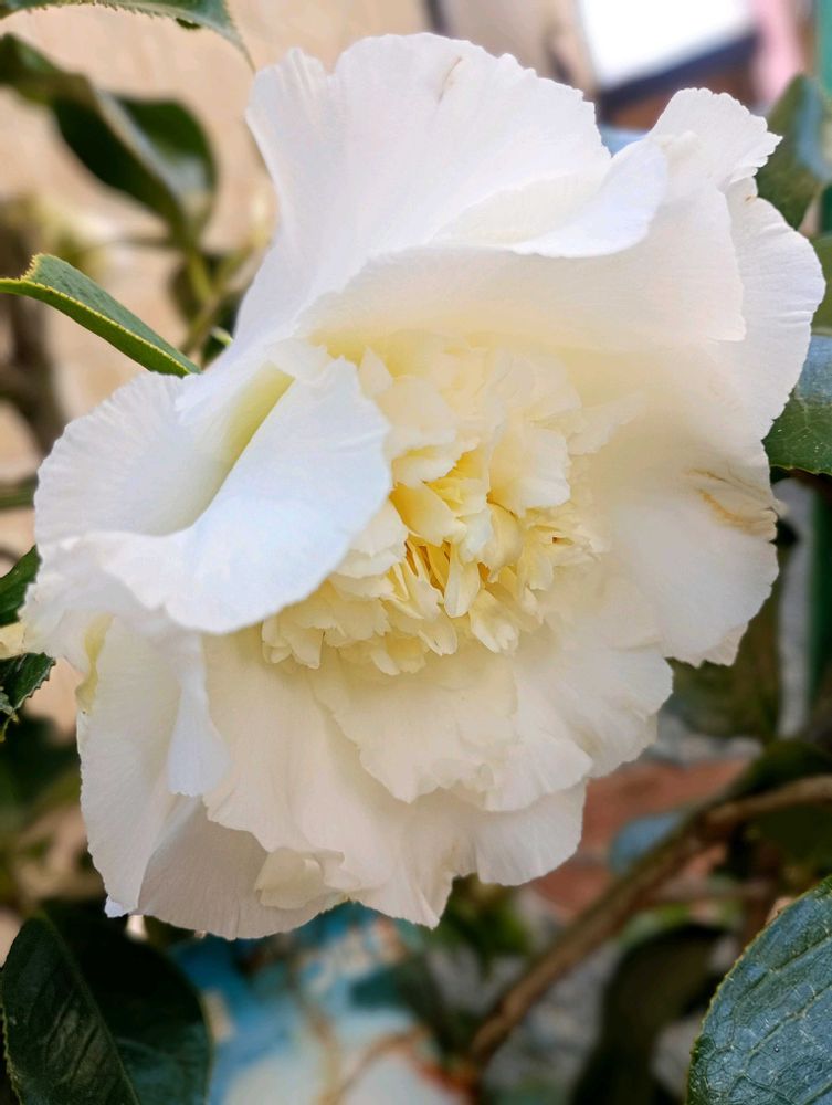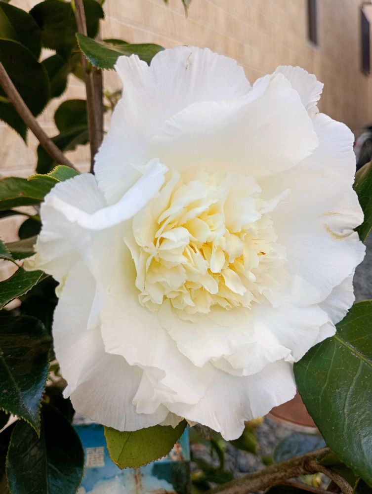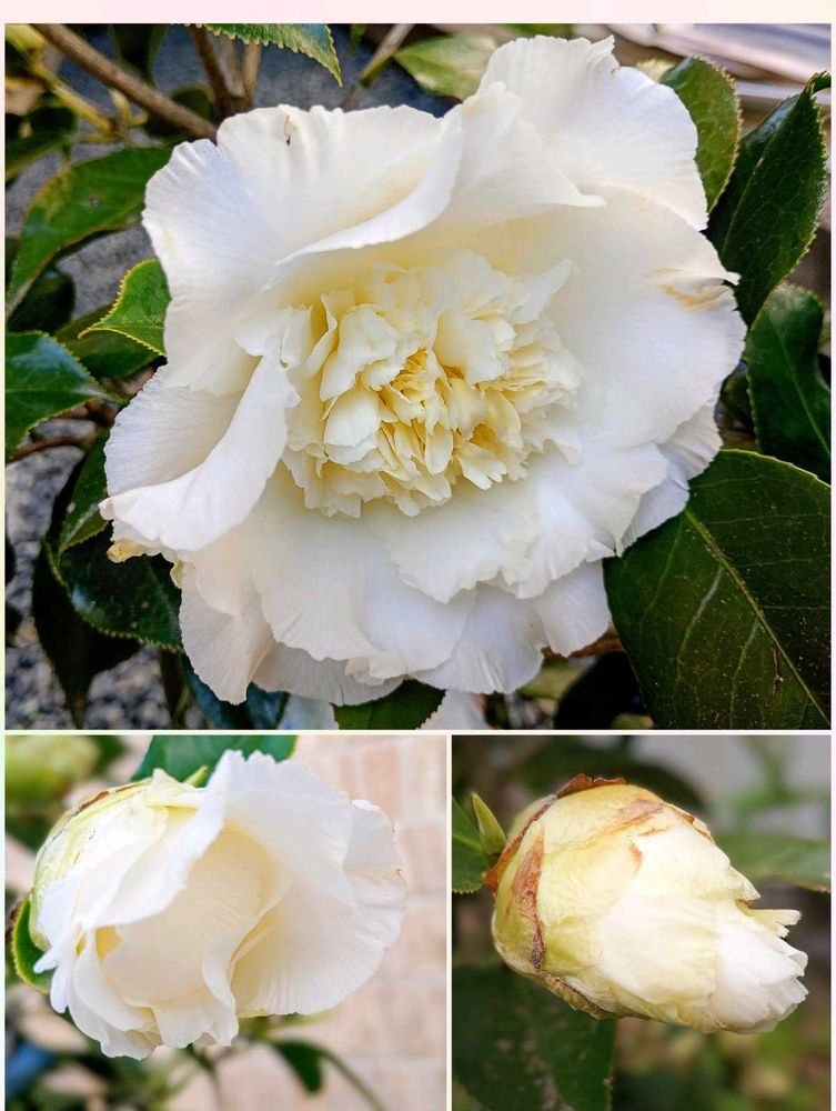 椿「エレガンスシャンパン」も1輪目が綺麗に咲き、次の蕾も明日にでも開きそうです🥰