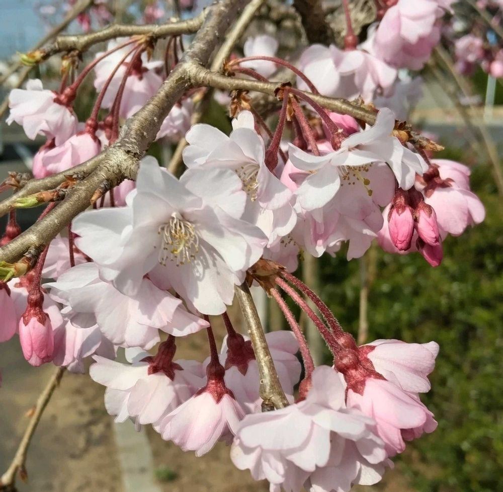 施設の駐車場の植え込みにソメイヨシノに混ざって植えられていた枝垂れ桜。