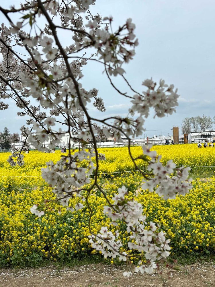 1キロ以上にわたる約1000本のソメイヨシノととんでもない広さの菜の花畑とのコラボは、本当に圧巻😱