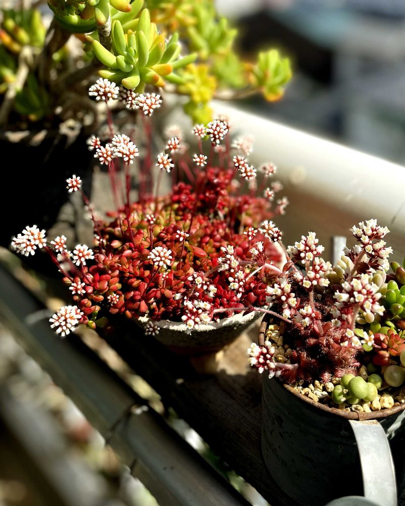 あちこちの鉢でこっそり開花してる紅稚児達