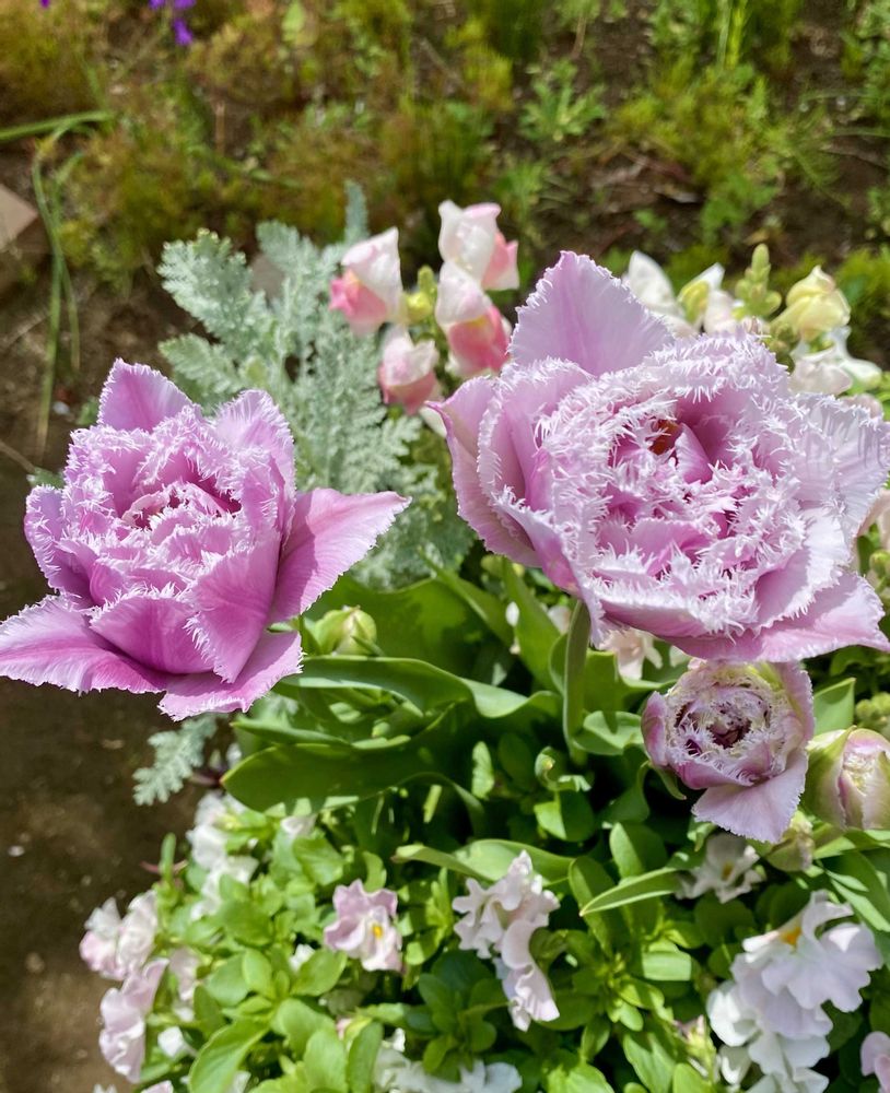 チューリップが咲いてきて、すごくかわいい寄せ植えになりましたね😍