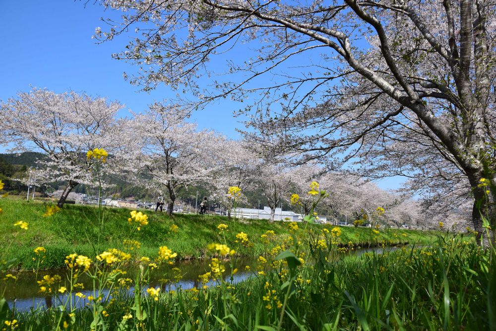 青空☀️と川🏞️と桜並木🌸