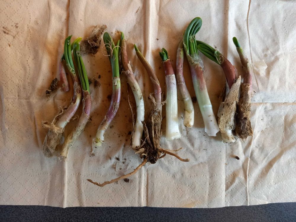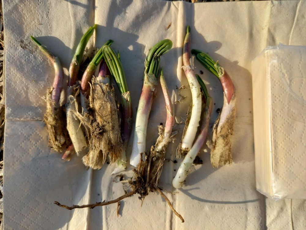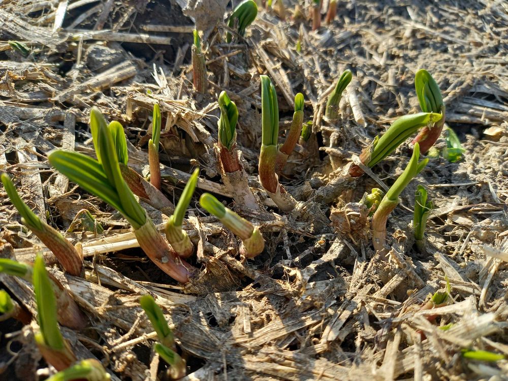 友達のお宅に今年も行者にんにくの芽が出てきました