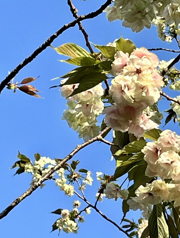 家の近隣では、ソメイヨシノが桜吹雪になる頃、ウコン桜や八重桜が咲き始めます。去年は、薄黄緑色のウコン桜をピンク色になる迄ずっと追いかけて撮りました。その結果、御衣黄💚だとずっと思っていた木がウコン桜だったことを発見しました。今年は、残念ながら見に行けそうにありません。