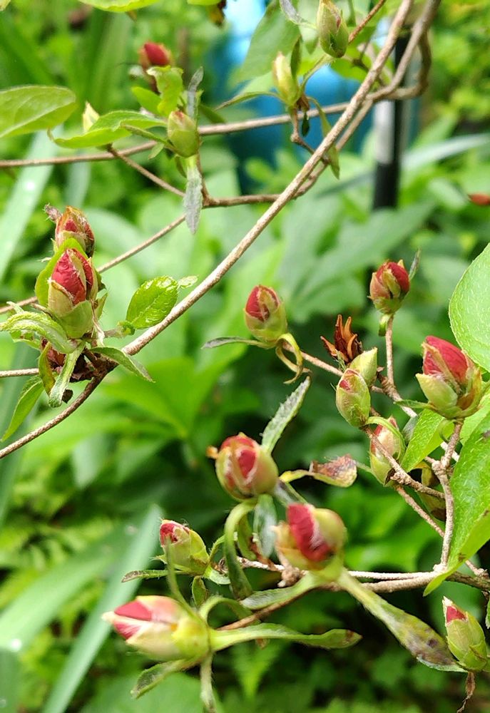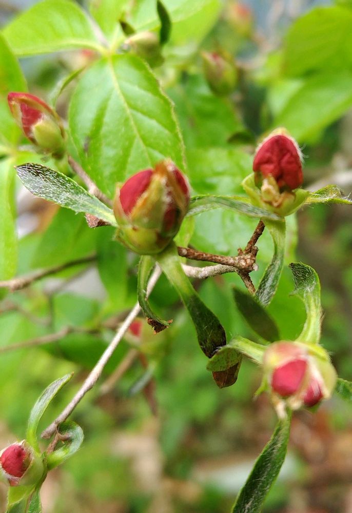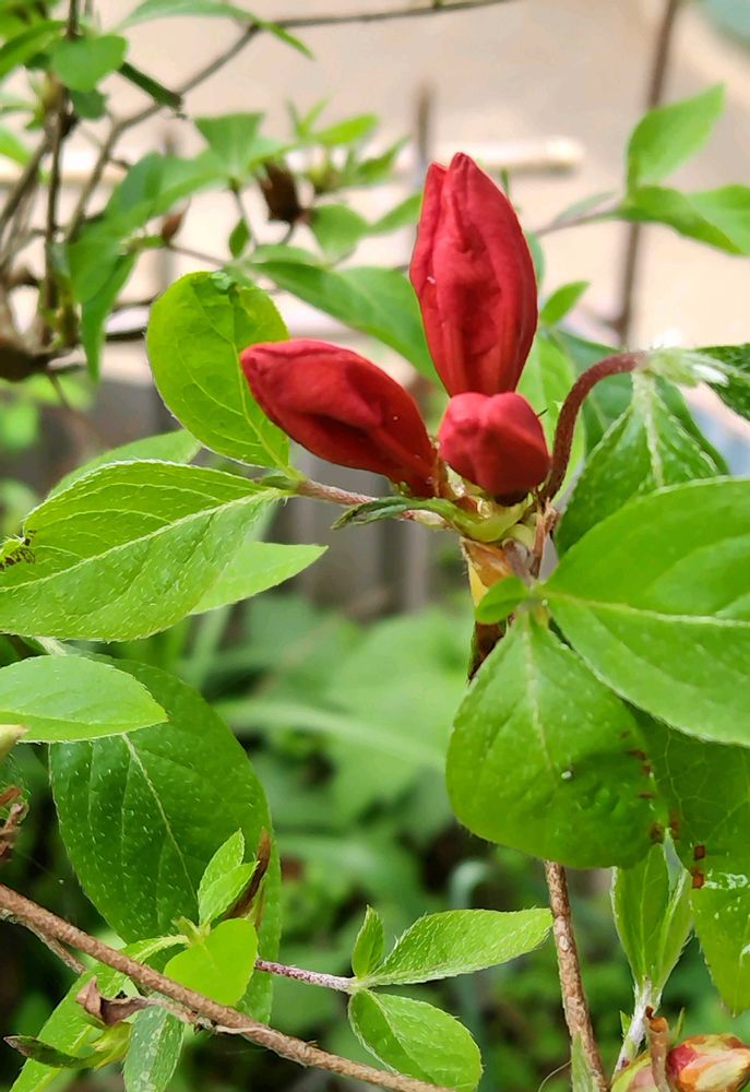 あっ、三つ葉ツツジの蕾が膨らんで来てた👍