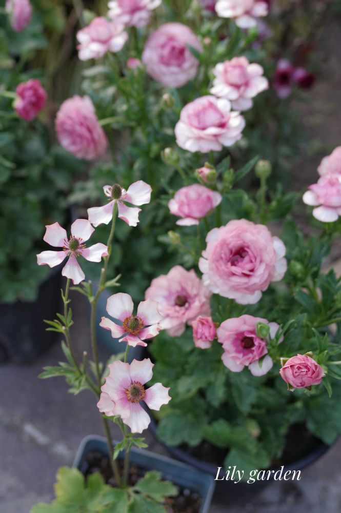 八重のピンクはヘラです♪ヘラは分球したので3鉢になりました。
