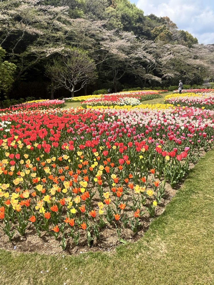 まだ桜も残ってて、あちらこちらにチューリップが満開🥰