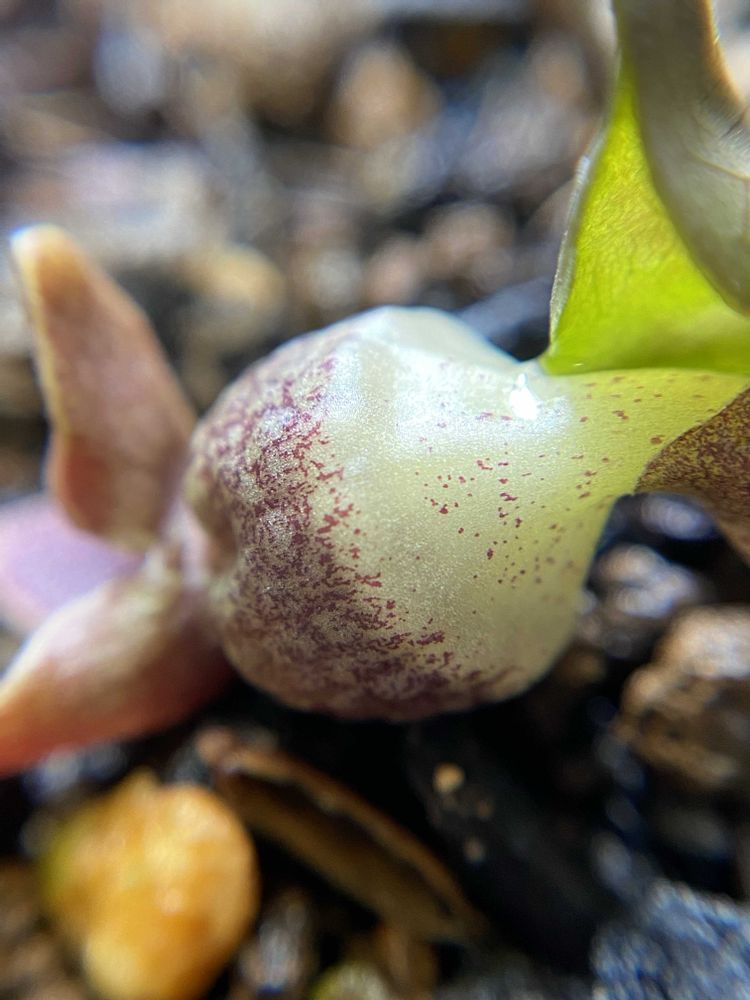 特徴としては開花直前に葉が枯れてしまい、開花後から新葉が1枚出て、その1枚で翌年まで保つという少し変わった性質を持っています。