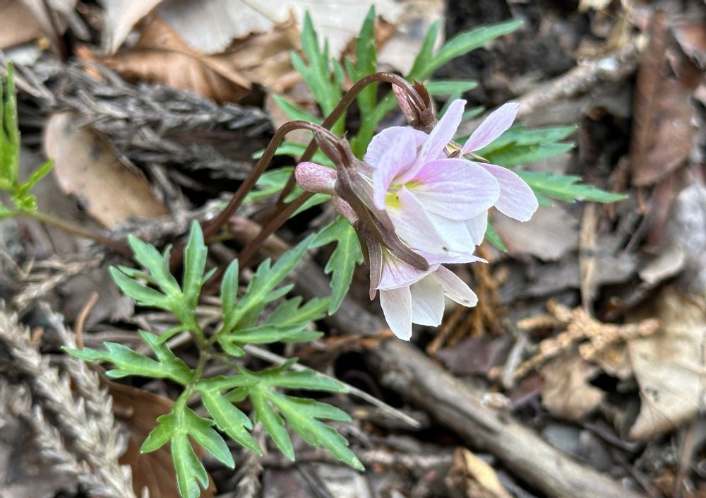 歩いて登ったので、山野草や春の木の花見られました☺️