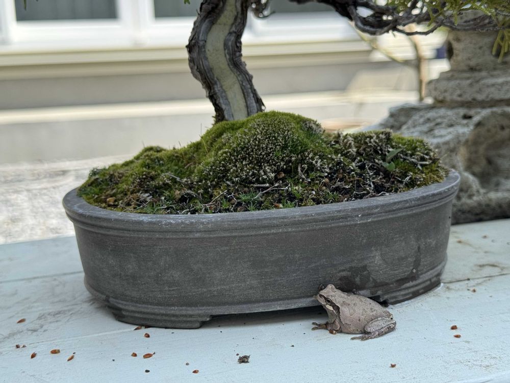 このあとまた、鉢の下に隠れました🐸