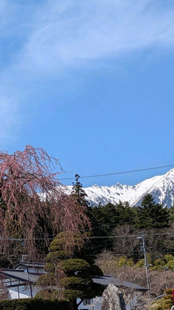 青空に南アルプス・中央アルプスの山々がとても映えて