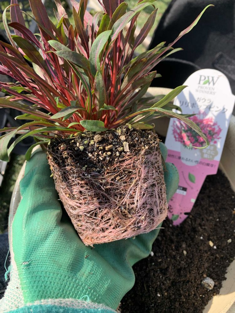 買ったまま放置していた子たちを植え付けました。こちらはサクラさん🌸2枚目はガウラ。根っこまでピンク🩷どちらもPWの子。どちらも初めて育てるので楽しみです。
