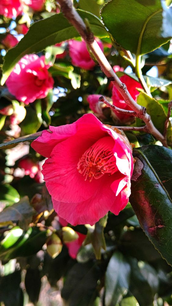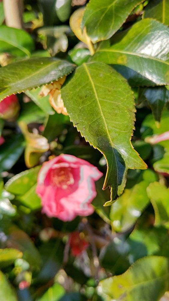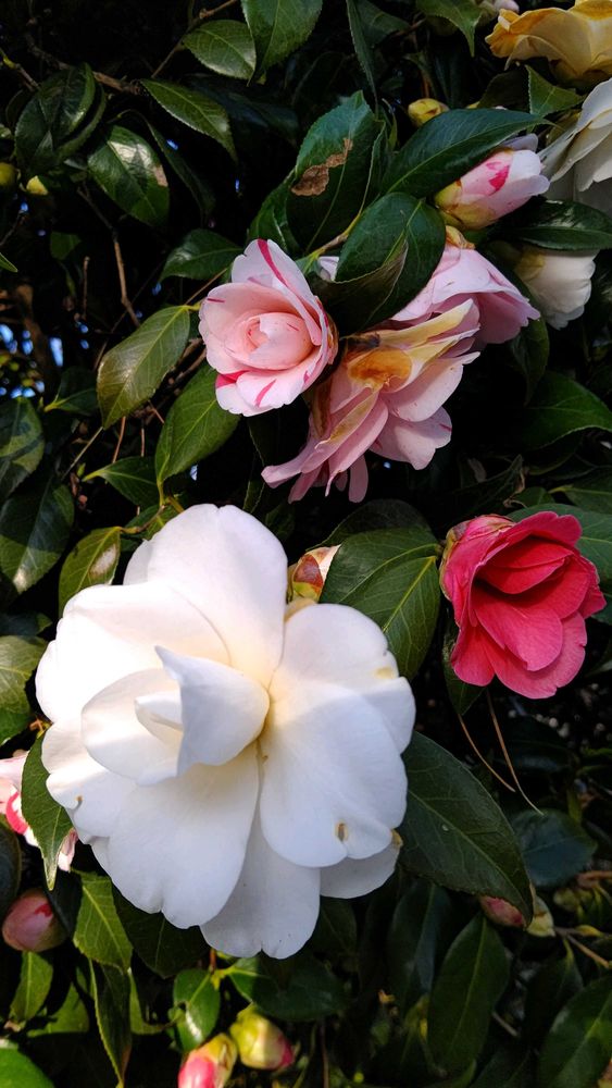 ⑤一つの木にいろんな色の花が咲く椿(品種わかりませんが、珍しいものらしいです)