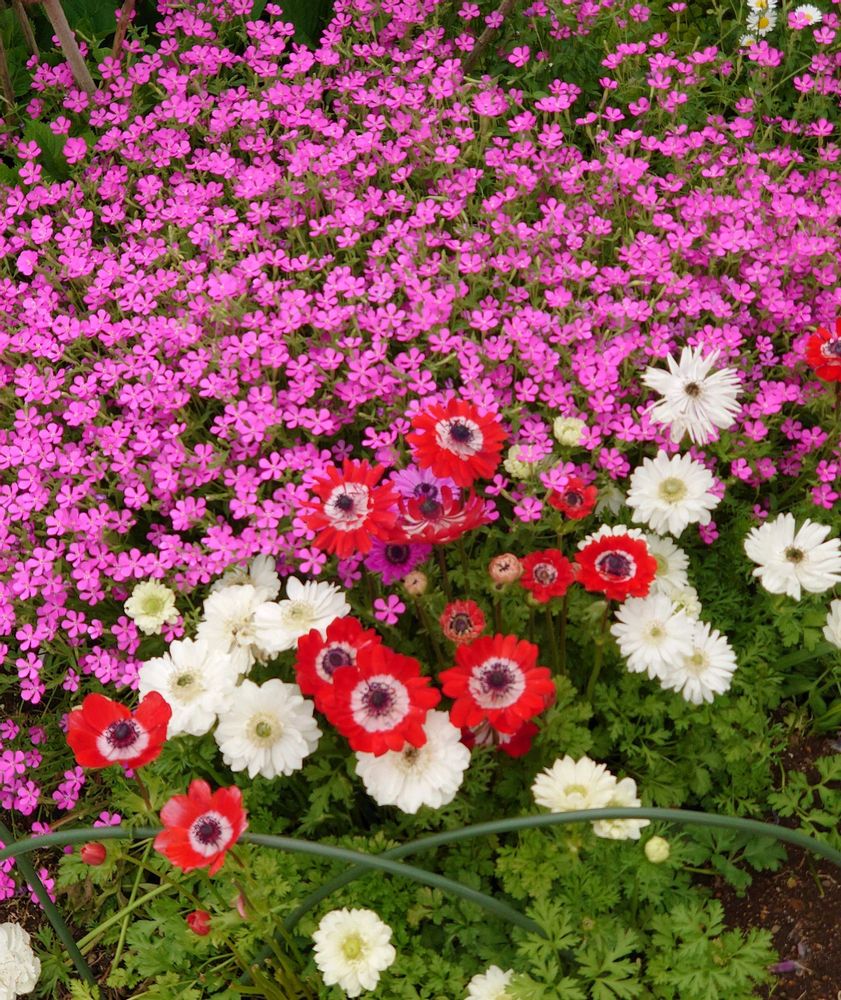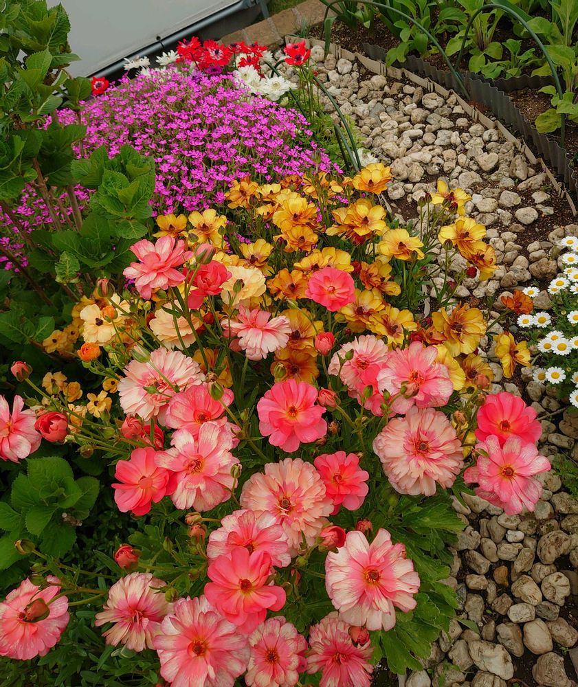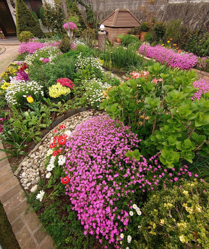 こんばんは☺️明るい花盛りガーデンですね🥰💕お人柄が伝わってきます👍✨花柄摘み大変ですよね🥲春の嬉しい叫びですよね🥹