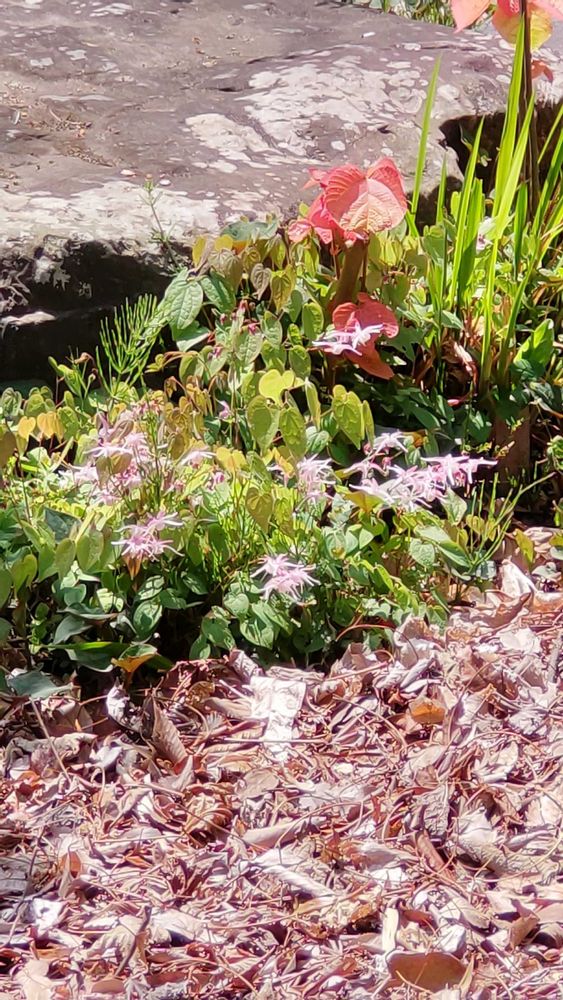 遠くていまいち分かりませんが今日のお花のイカリソウらしきものが👀