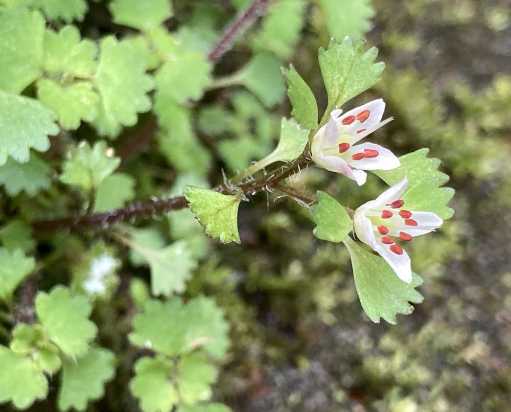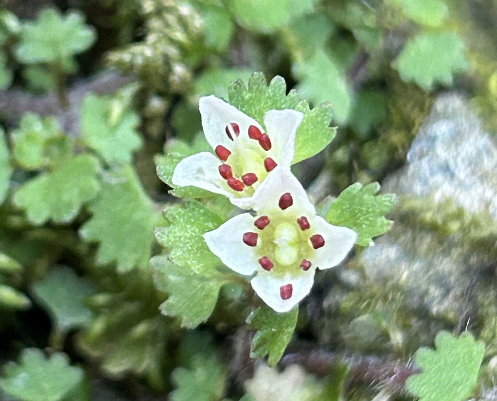 白い萼の中に8個の赤い雄蕊のあるとても可愛いです。